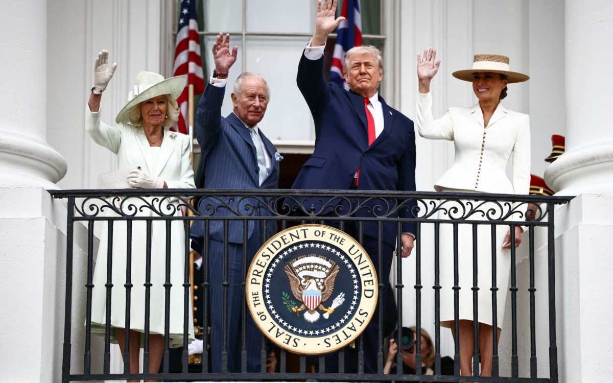 Pela manhã, Trump, muito afeito ao aparato monárquico, recebeu Charles III e a rainha Camilla com militares em traje de gala, uma banda de música, 21 salvas de canhão e o sobrevoo de aviões de combate.