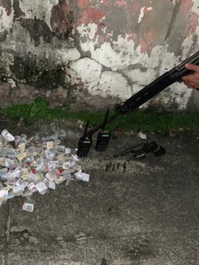 Nilópolis - Policias militares do 20º BPM (Mesquita) prenderam, na noite deste sábado (12/02), dois criminosos armados em uma ação na Rua General Olímpio da Fonseca, com a Rua Ramirez Galvão, no acesso à comunidade Ponte Azul, no bairro Olinda, em Nilópolis. Ainda na ocorrência, foram apreendidos uma quantidade de drogas, um revólver calibre 38, munições e rádios transmissores.