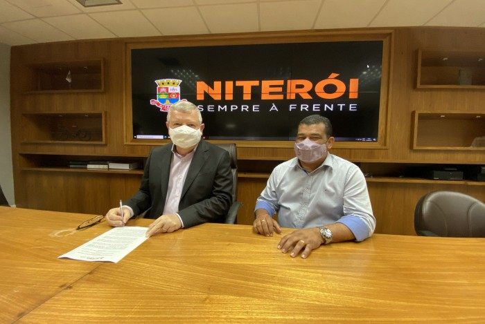 O prefeito de Niterói, Axel Grael, acompanhado do secretário municipal de Habitação, Roberto Fernandes Jales, o Beto da Pipa, assinou, nesta terça-feira (31), o memorando de entendimento com o Programa das Nações Unidas para os Assentamentos Humanos (ONU-Habitat).Divulgação PMN - Foto Luciana Carneiro