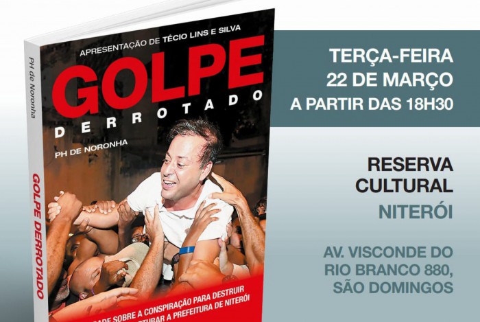 Após reunir mais de 2 mil pessoas no maior lançamento do ano da rede de Livrarias Travessa, o jornalista PH de Noronha estará neste terça (22/03), a partir das 18h30min., no Cinema Reserva Cultural Niterói para autografar Golpe Derrotado - A verdade sobre a conspiração para destruir Rodrigo Neves e capturar a Prefeitura de Niterói. O lançamento terá a presença do ex-prefeito, personagem central da obra.