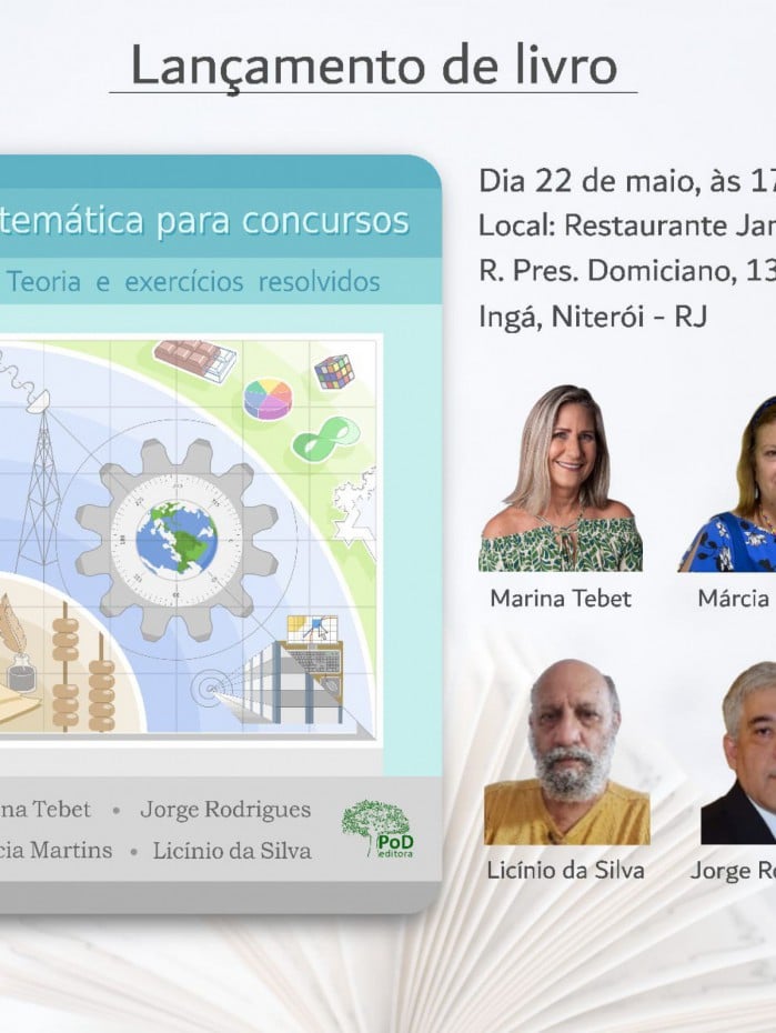 O ano de 2022 mostra um momento sanitário bem mais favorável que os últimos dois anos, período em que a pandemia suspendeu uma série de atividades, inclusive a realização de concursos. E com o retorno das provas, muitos querem se dedicar aos estudos, principalmente de matemática. Por isso, quatro professores de exatas se reuniram e escreveram o livro “Matemática para concursos”. O lançamento, que será feito pela Pod Editora acontecerá no dia 22 de maio (domingo), às 17h, no Restaurante Jambeiro, no Ingá, na Zona Sul de Niterói.