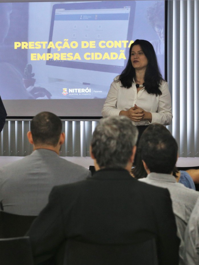 A secretária de Fazenda de Niterói, Marília Ortiz, e o delegado regional do Conselho Regional de Contabilidade do Rio de Janeiro (CRC-RJ), João Carlos Romualdo, se reuniram com contadores do município para esclarecer os principais pontos sobre a prestação de contas do Programa Empresa Cidadã.