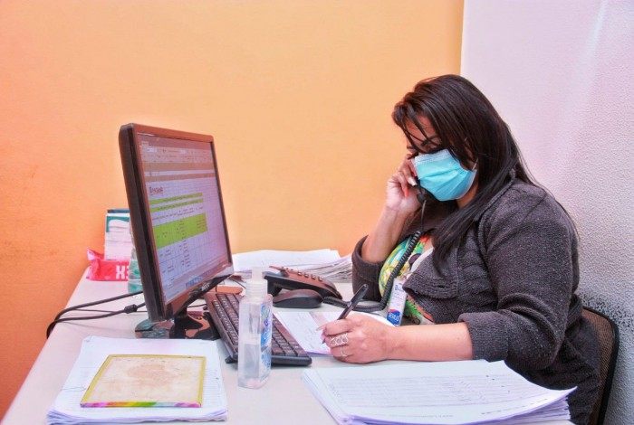 Atendentes ajudam contato de parentes de internados com seus familiares.Divulgação
