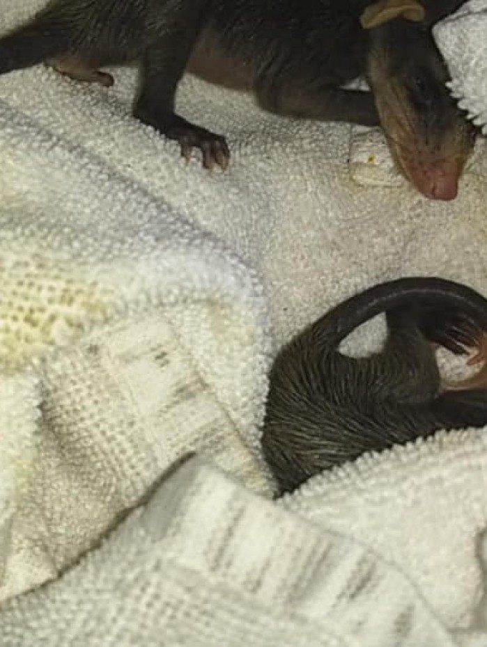 Dois filhotes de gambá-de-orelha-preta (didelphis aurita) foram resgatados pela Guarda Municipal Ambiental de Nova Iguaçu na área do Parque Natural Municipal. Os animais perderam a mãe e dificilmente sobreviveriam sozinhos na natureza.