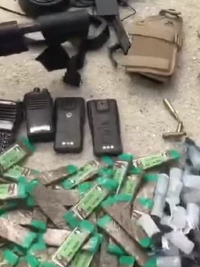 Com ela, foram apreendidos uma réplica de pistola, um kit roni (um equipamento criado para tiro recreativo dá mais estabilidade ao atirador, mas que costuma ser utilizado por bandidos em armas de verdade), três munições de fuzil cal 556, dois coldres, três rádios transmissores e bases de rádios transmissores. Os suspeitos e o material apreendidos foram levados para a Delegacia de Comendador Soares.
