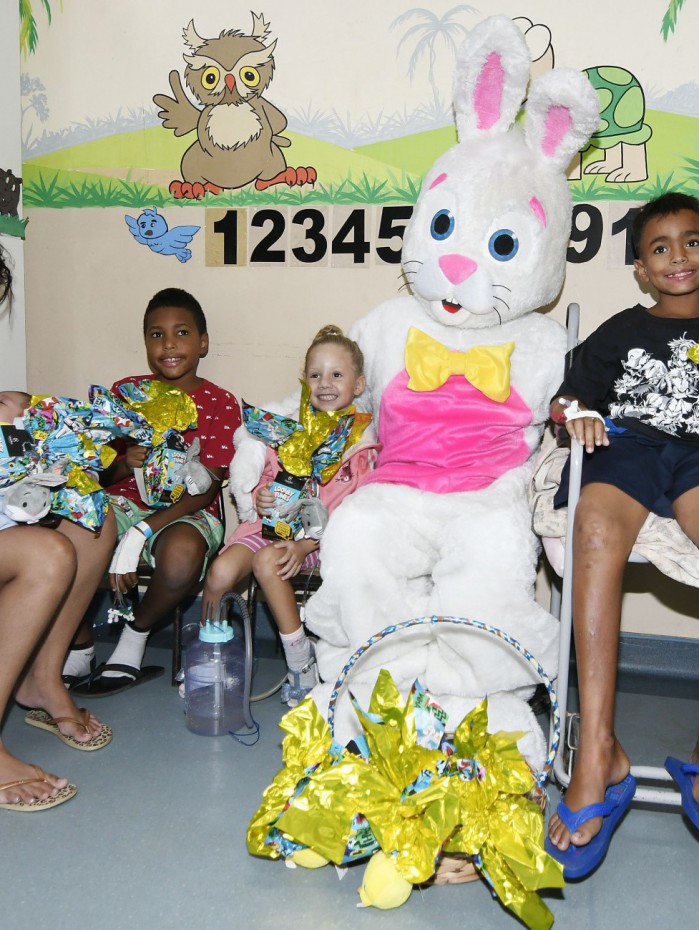 As crianças internadas no Hospital Geral de Nova Iguaçu (HGNI) comemoraram a Páscoa mais cedo com uma celebração, que trocou a rotina hospitalar, de remédios, agulhas e exames, por uma tarde de diversão, com lanches e brincadeiras. Os pais e acompanhantes também não ficaram de fora da celebração, que contou com a visita de dois coelhos da Páscoa, que fizeram a entrega de doces e ovos de chocolate, tudo sob orientação da equipe médica e de nutrição.