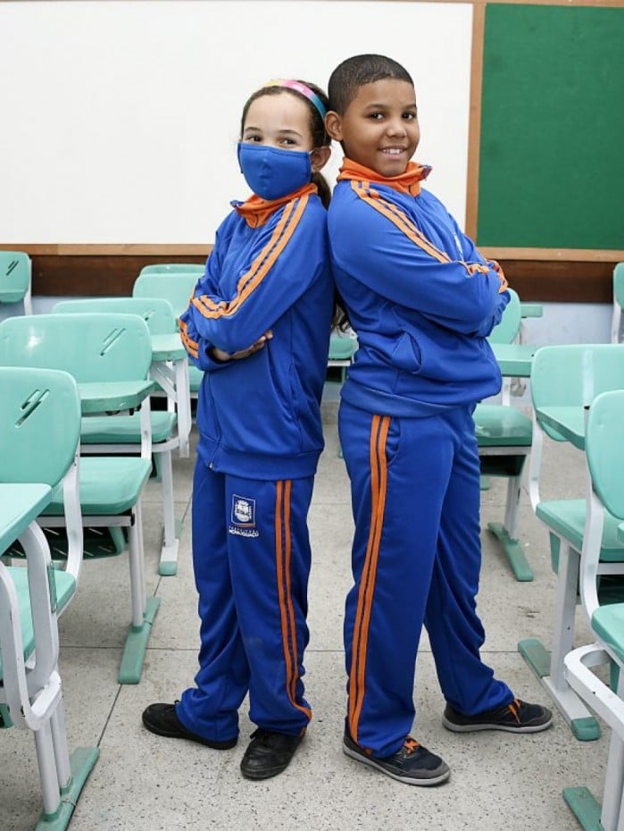 O kit composto por calça e casaco animou os alunos da Escola Municipal Doutor Thibau, no bairro da Luz. Hillary Ferreira de Oliveira e Patrick Romaneli, ambos de 9 anos, estavam entusiasmados dentro de sala de aula, com a novidade.