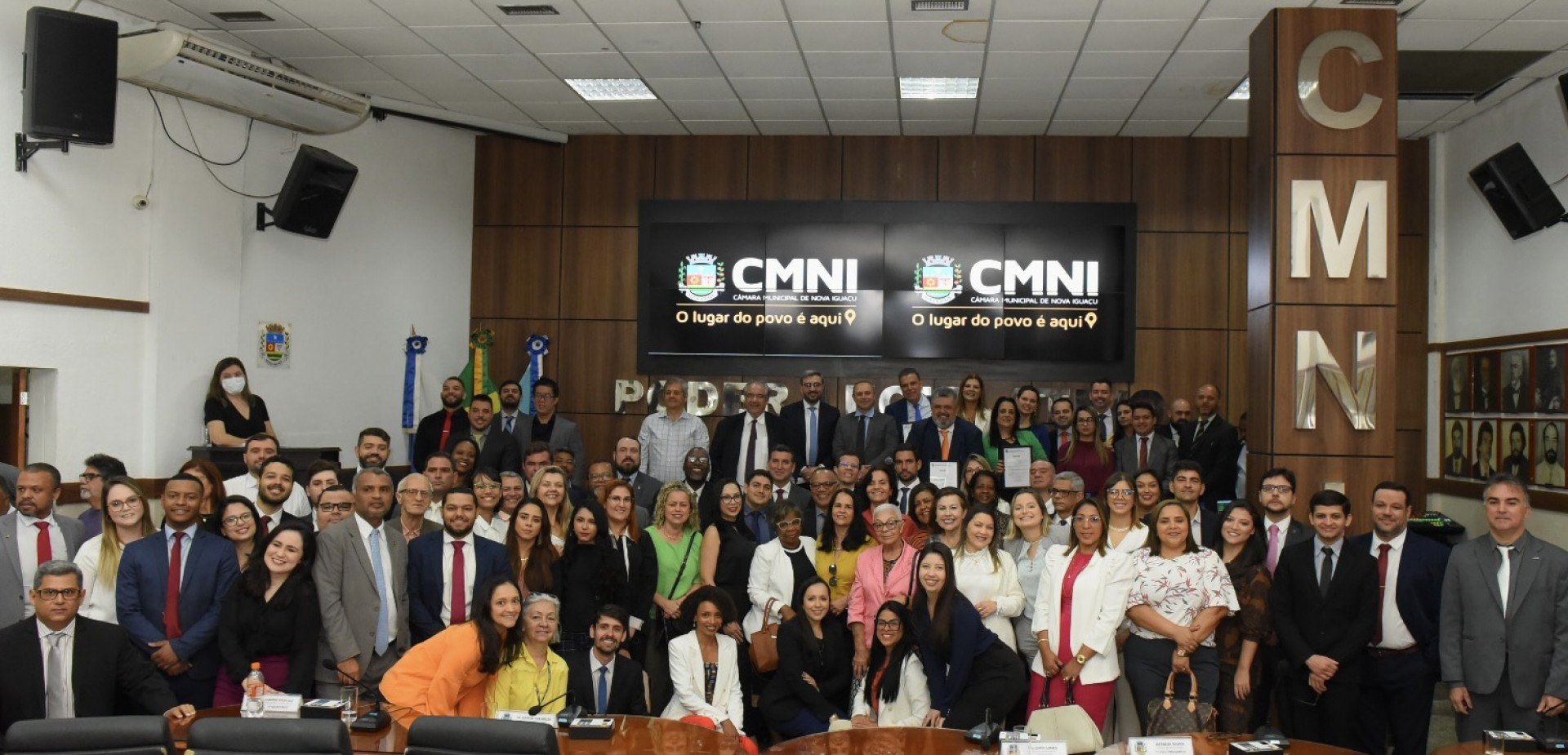 A Câmara Municipal de Nova Iguaçu realizou, na última semana, uma sessão solene em homenagem ao Dia da Advocacia. Advogados e advogadas da 1ª subseção da Ordem dos Advogados do Brasil – Nova Iguaçu/Mesquita - lotaram o plenário da Casa para o evento.