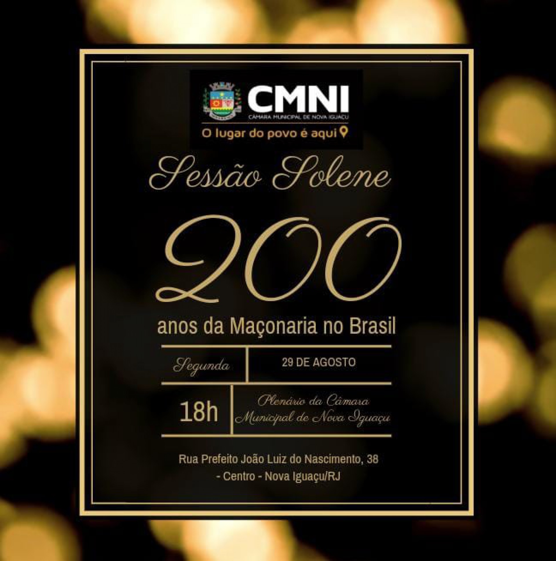 Nesta segunda-feira, a Câmara Municipal de Nova Iguaçu realiza uma Sessão Comemorativa para homenagear o Dia do Maçom e os 200 anos do Grande Oriente do Brasil.