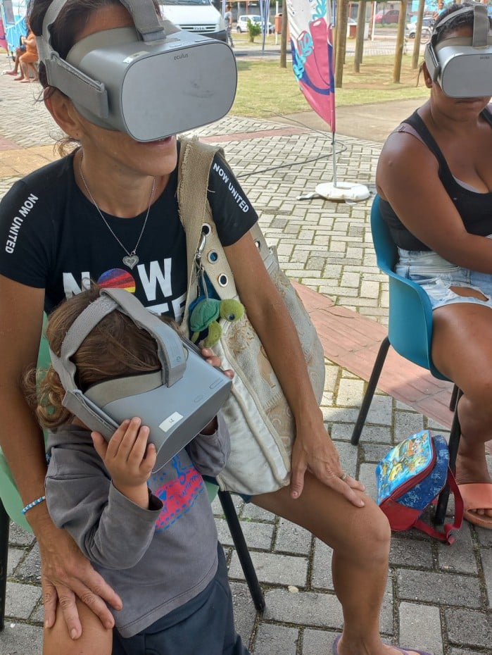 As amigas Isa Maia e Sandra França, levaram os filhos para participar do evento e aproveitaram a oportunidade para conhecer as instalações artísticas e viajar numa experiência totalmente interativa, através dos óculos de realidade virtual.
