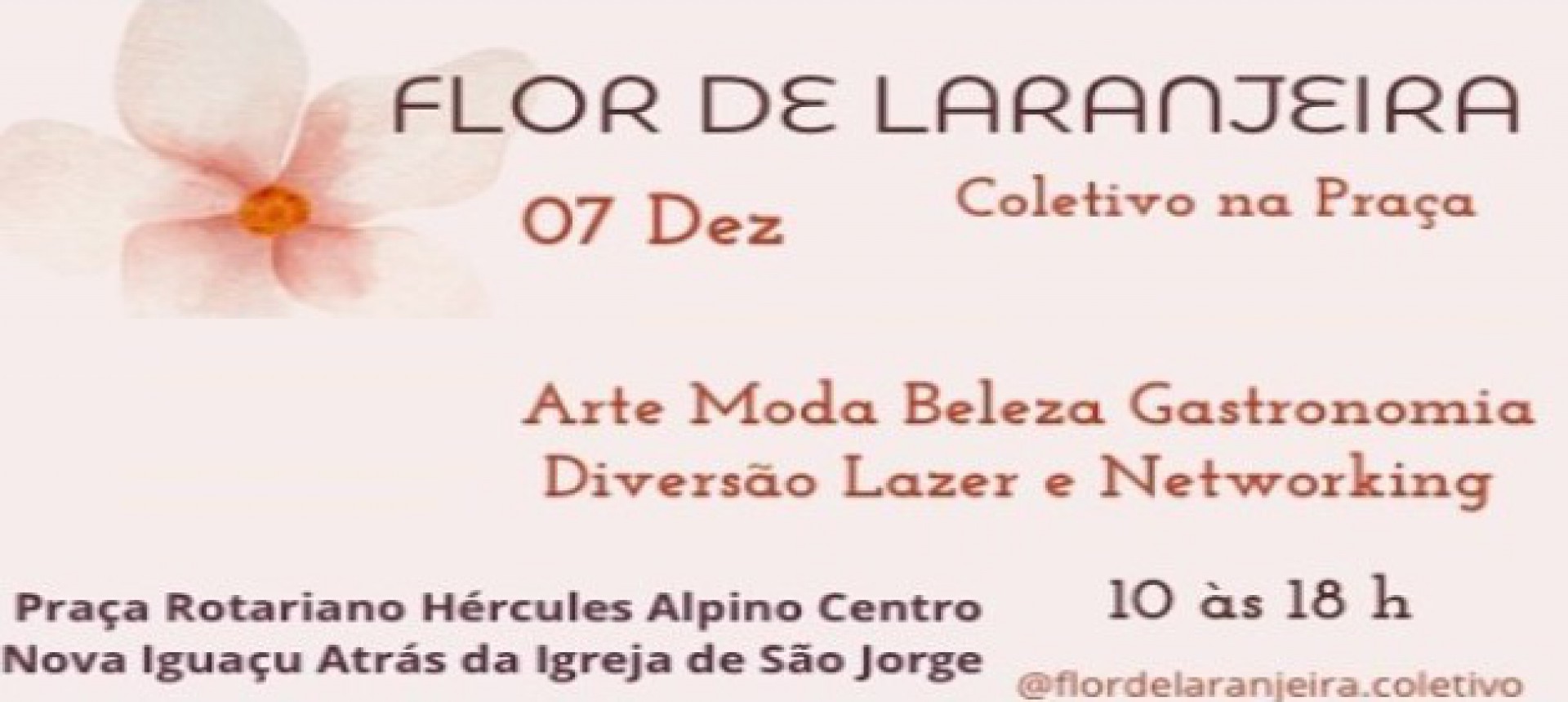 O município de Nova Iguaçu recebe nesta quarta-feira a terceira edição do Projeto Flor de Laranjeira Coletivo, que vai reunir expositores de arte, artesanato, moda, gastronomia e terá, ainda, apresentações musicais. O evento acontece na Praça Rotariano Hércules Alpino, no Centro, das 10h às 18h.
