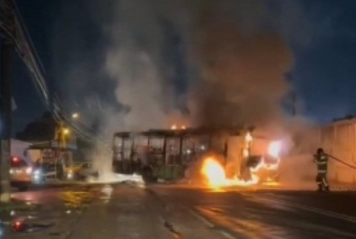Criminosos sequestraram ônibus e atearam fogo no KM 32, em Nova Iguaçu.Reprodução