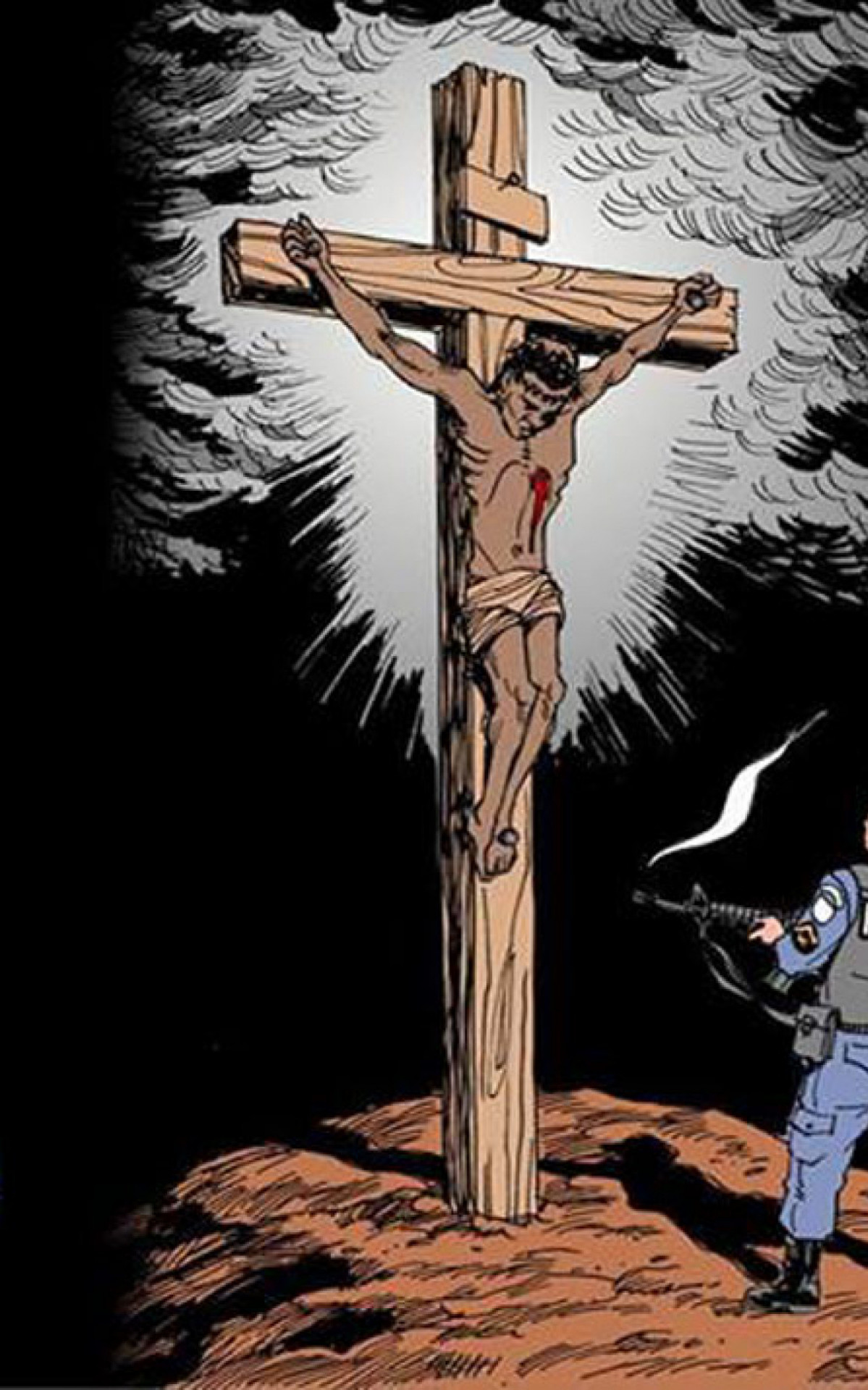 Em 2007 a polícia fluminense promoveu uma caçada à luz do dia e promoveu chacina nas favelas da Coréia e Alemão. Foi a primeira chacina à luz do dia no Rio de Janeiro. Em 2013, enquanto se discutiam se órgãos públicos poderiam ostentar símbolos religiosos, coloquei na sala de audiência do órgão judicial no qual trabalhava, uma charge do cartunista Carlos Latuff. Uma obra de arte com um homem crucificado sendo atingido por um tiro de fuzil disparado por um policial causou mais comoção que todas as mortes, efetivamente ocorridas. Um parlamentar que condecorava milicianos presos com honrarias da Assembleia Legislativa e mantinha familiares deles lotados em seu gabinete escandalizou-se com a obra de arte. A arte apenas denunciava a barbárie, que já se queria naturalizar.