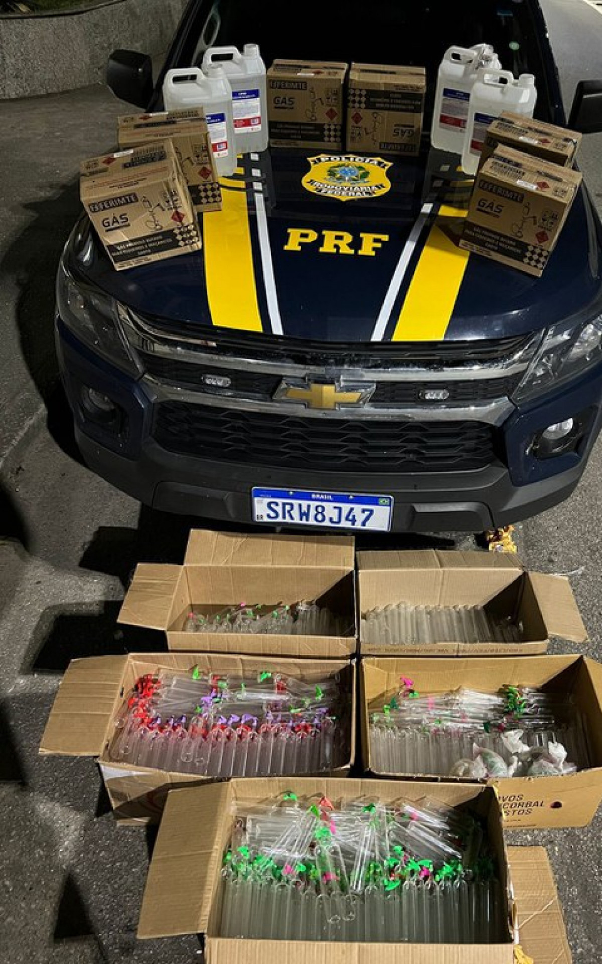 Homens transportando insumos para a fabricação de lança-perfume são presos na BR-040