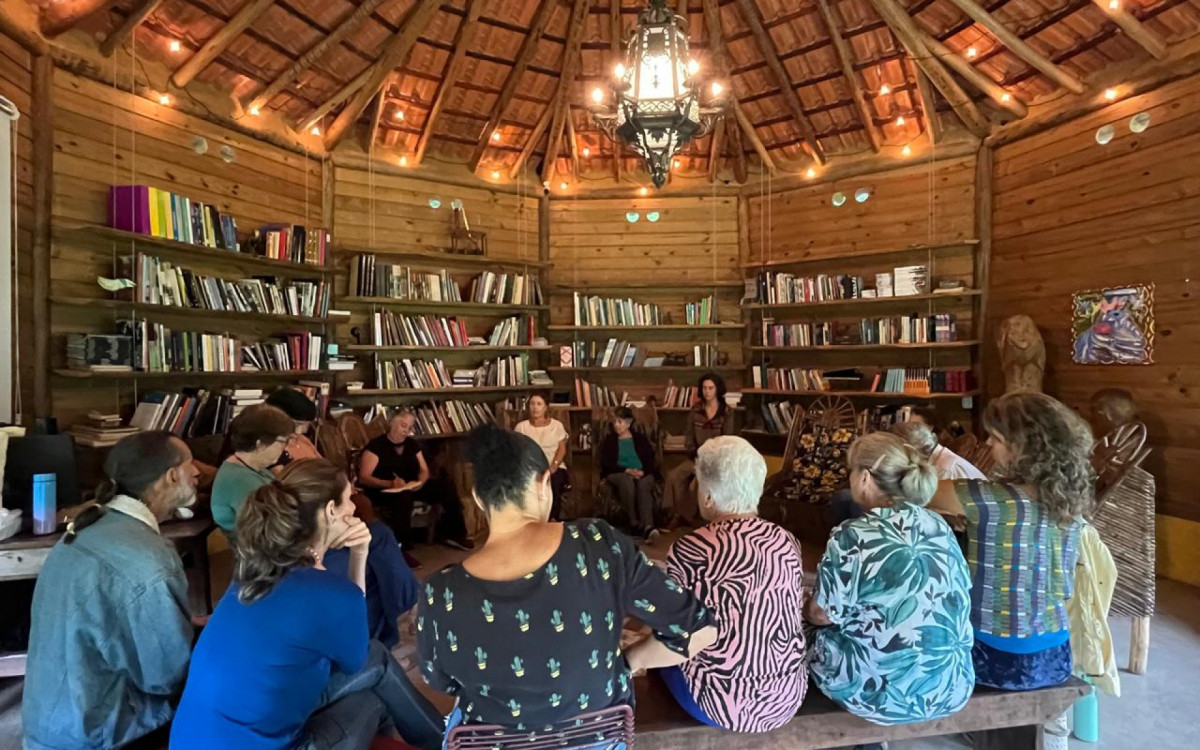 Além das exposições, o espaço mantém uma biblioteca aberta às quintas, sextas e sábados, das 10h às 17h, com títulos de arte contemporânea, literatura e educação disponíveis para consulta local. Entre as obras, o público encontra também livros da presidente da Associação – como “Escolas da Floresta: entre o passado oral e o presente letrado” – conhecida por sua atuação em projetos de formação de docentes e na educação indígena em diversas regiões do país.