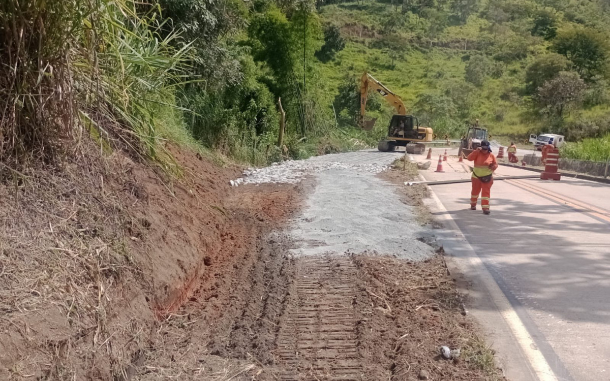 Um desvio foi executado no km 22,7 da rodovia. Ele funciona em esquema de pare e siga, 24 horas por dia.