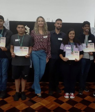 Na cerimônia, o professor Tiago Soares Silva, que atua na Escola Municipal Francisco de Assis Medeiros Rangel e no Colégio Municipal Professora América Abdalla, teve seu trabalho reconhecido pela organização da Olimpíada e recebeu um certificado.