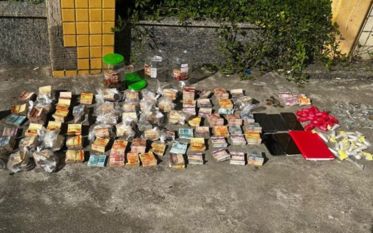 Ao todo, foram apreendidos R$ 68.246 em espécie, 38 pinos de cocaína, 49 porções de maconha e outras 44 unidades de entorpecentes variados. Também foram recolhidos cinco celulares e anotações que indicam a organização da venda de drogas na área.