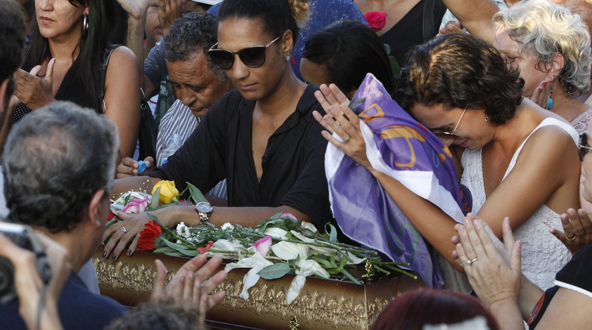 A atriz Zezé Motta também foi ao cemitério acompanhar o sepultamento. "Não podemos desanimar. A gente tem é que lutar, denunciar. Vejo nela uma mártir na causa, uma mártir brasileira. Do jeito que tá, acho que a gente está fazendo pouco. Acho que ela vai despertar uma coisa em todos nós, que a gente vai acordar todos os dias para fazer alguma coisa para mudar isso. Infelizmente custou a vida dela", disse muito emocionada.