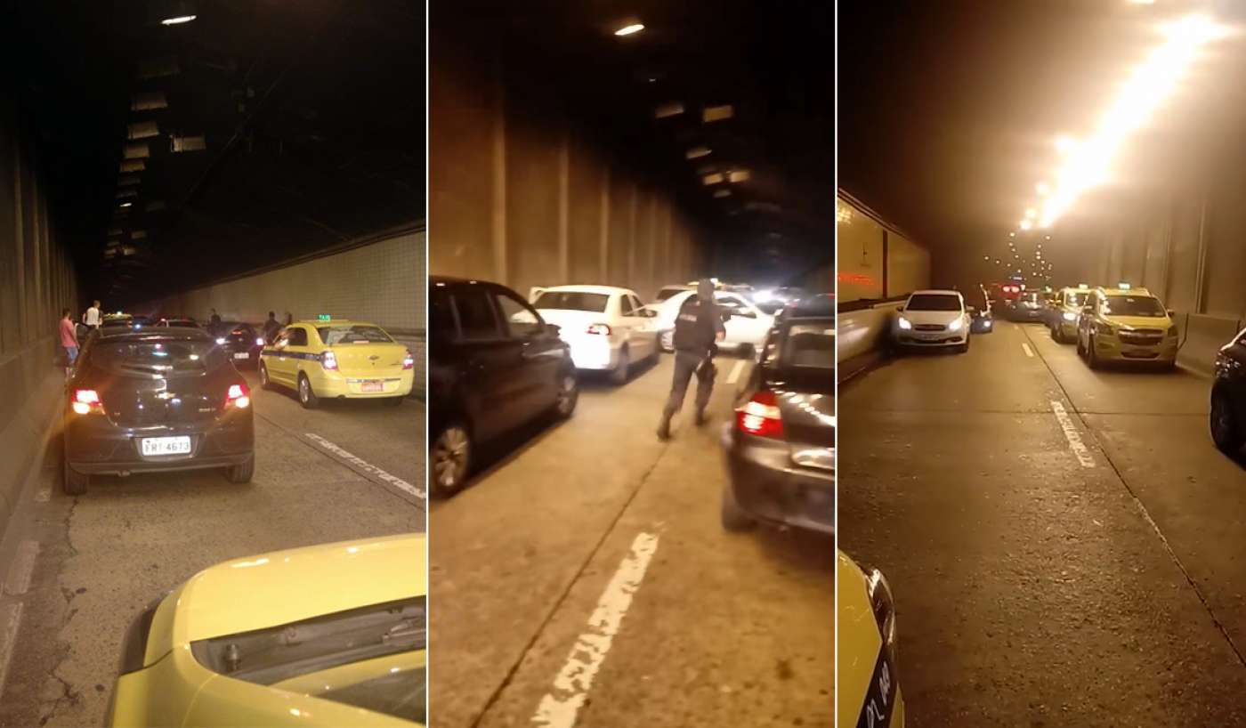 Imagens que circulam na Internet mostram carros voltando na contra-mão e policiais dentro do túnel.