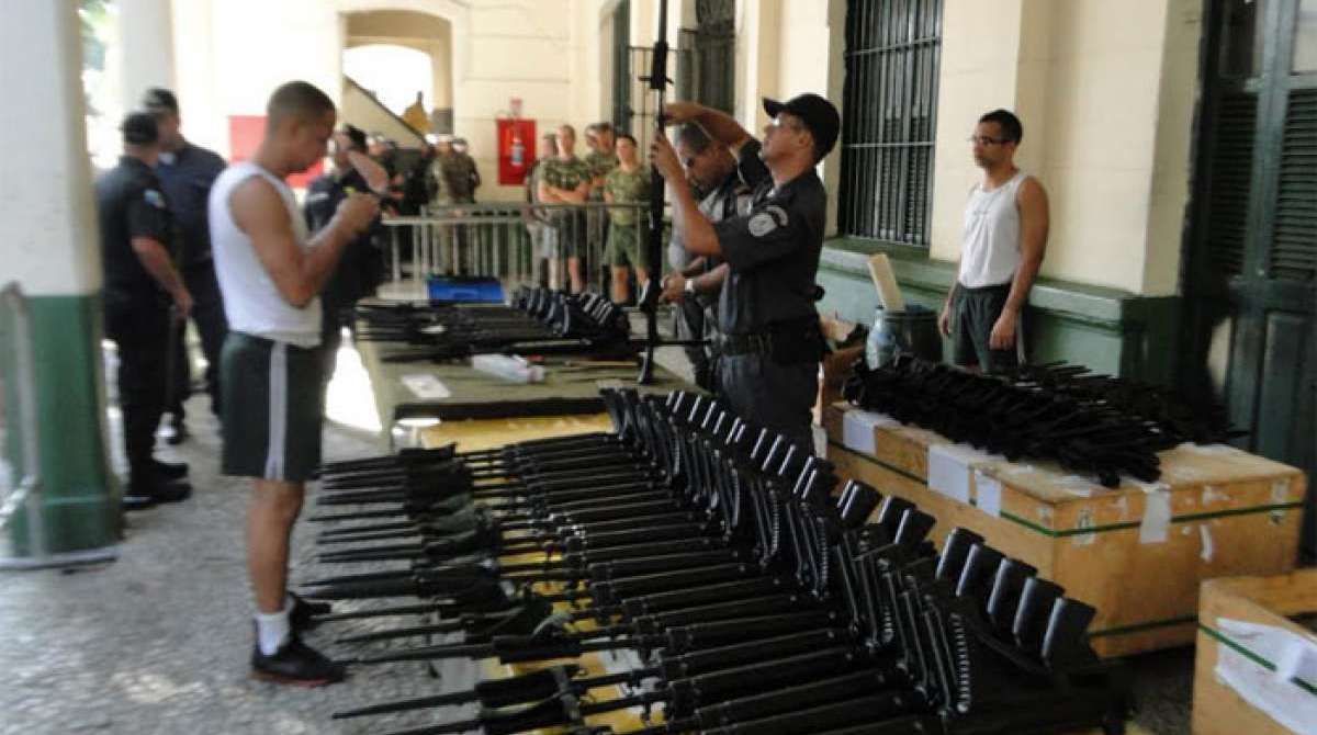 Rio - Policiais do 14º BPM (Bangu) receberam cem fuzis do 1º Batalhão de Guarda do Exército na manhã desta segunda-feira. O armamento, do tipo Parafal, calibre 7,62, foi entregue para reforçar o batalhão da Zona Oeste. A medida faz parte das medidas emergenciais previstas para recuperar a capacidade operativa do local. Há dois meses, um grupo formado por 13 oficiais do Exército realizou uma vistoria na unidade.