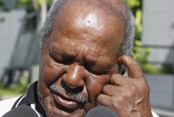 ![Parentes de mais uma vitima de bala perdida.Edna Palafoz de Oliveira foi atingida por uma bala durante um comfronto na favela de antares Zona Oeste do Rio,familiares no IML [centro] Daniel Campos esposo, na foto Manoel Campos ,sogro