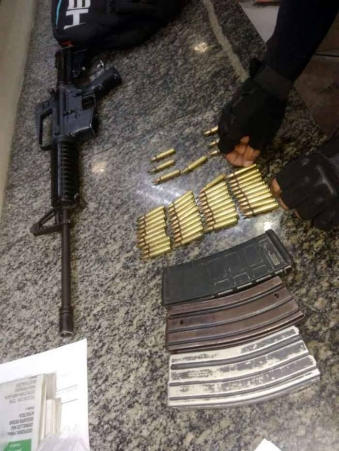 De acordo com a PM, ao serem revistados, além do fuzil, foram encontrados com os dois três carregadores, além de munições que ainda serão contabilizadas. A moto em que eles estavam também foi apreendida.