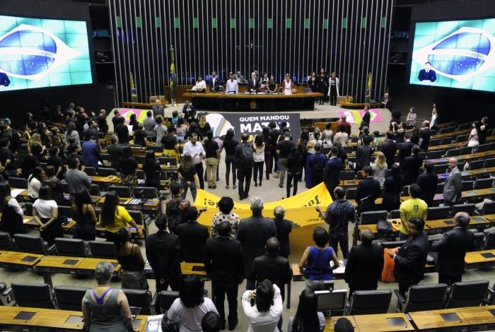 Brasília - A vereadora Marielle Franco (Psol-RJ) e o motorista Anderson Gomes foram homenageados em sessão solene no plenário da Câmara dos Deputados nesta segunda-feira. Os dois foram assassinados a tiros no dia 14 de março de 2018, no Estácio, na região central do Rio. Na última terça, a Polícia Civil prendeu Elcio Vieira de Queiroz e Ronnie Lessa como os suspeitos de serem os assassinos dos dois.