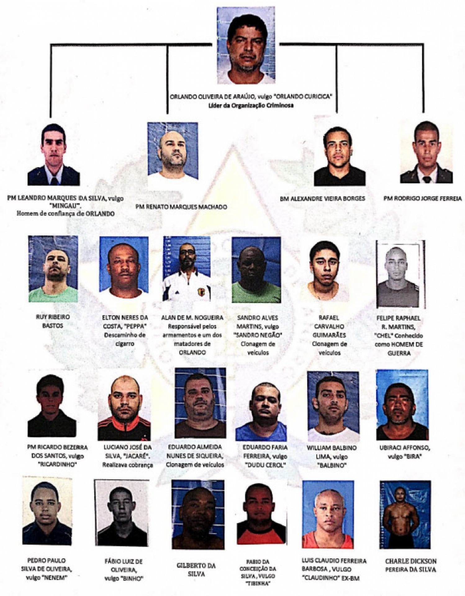 Um dos mandados de prisão cumpridos contra quem já estava preso foi contra o ex-PM Alan de Moraes Nogueira, o Cachorro Louco, que cumpre pena no Batalhão Prisional Especial (BEP), em Niterói. Ele é considerado o fornecedor de armas do bando e o matador da quadrilha.