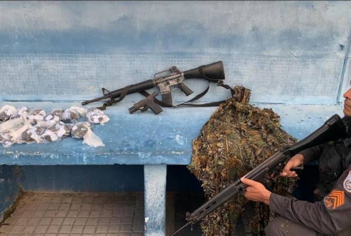 Com os criminosos mortos em confronto, as equipes apreenderam um fuzil, uma pistola e drogas.