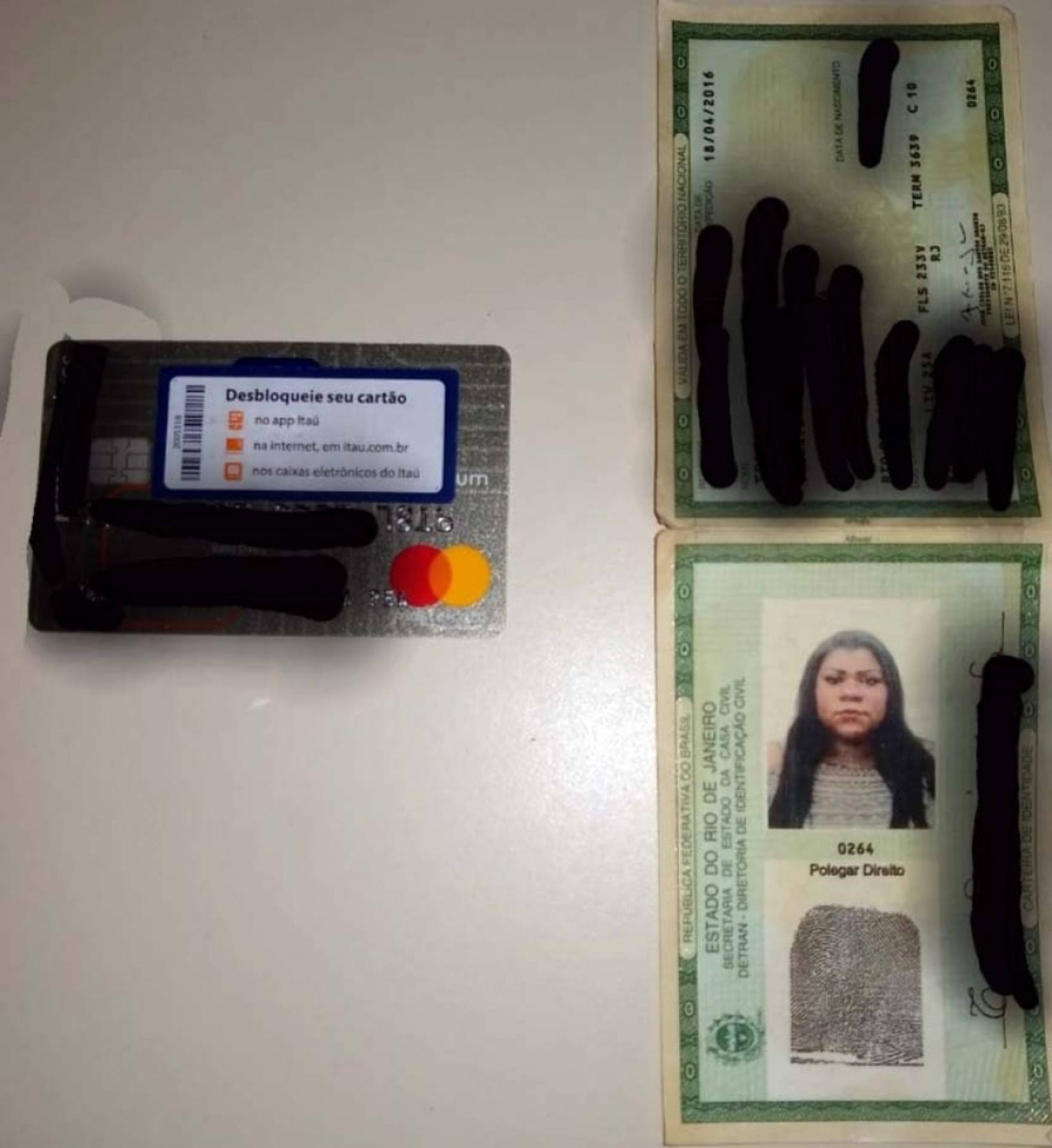 Documentos e cartão encontrado com a estelionatária - Divulgação / Polícia Civil