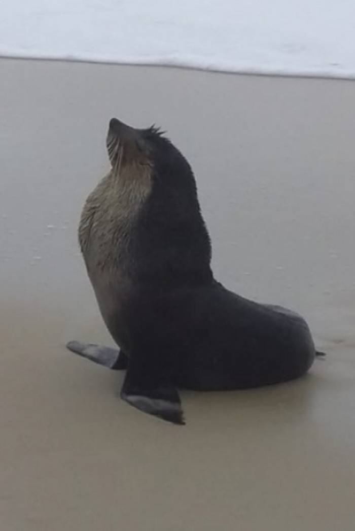 Lobo-marinho para na praia de Camboinhas, em Niterói, para descansar