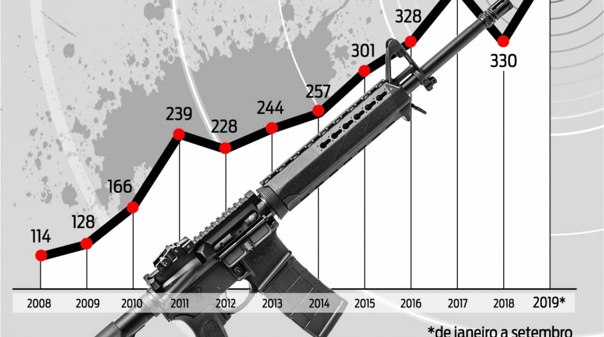 De acordo com a PM, um dos fuzis mais usados no estado, o de calibre 762, tem preço comercial de R$ 7 mil a R$ 10 mil no mercado convencional. Já no comércio ilegal, o valor pode chegar a R$ 50 mil.
