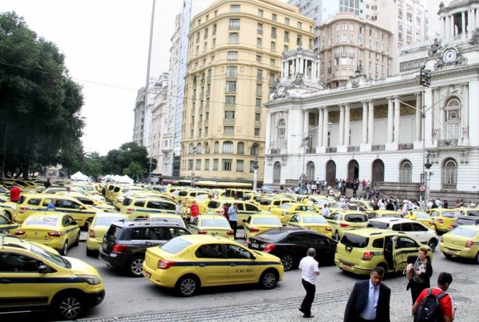 Taxistas fazem protesto na Cinelândia para pressionar regulamentação de transporte de aplicativo