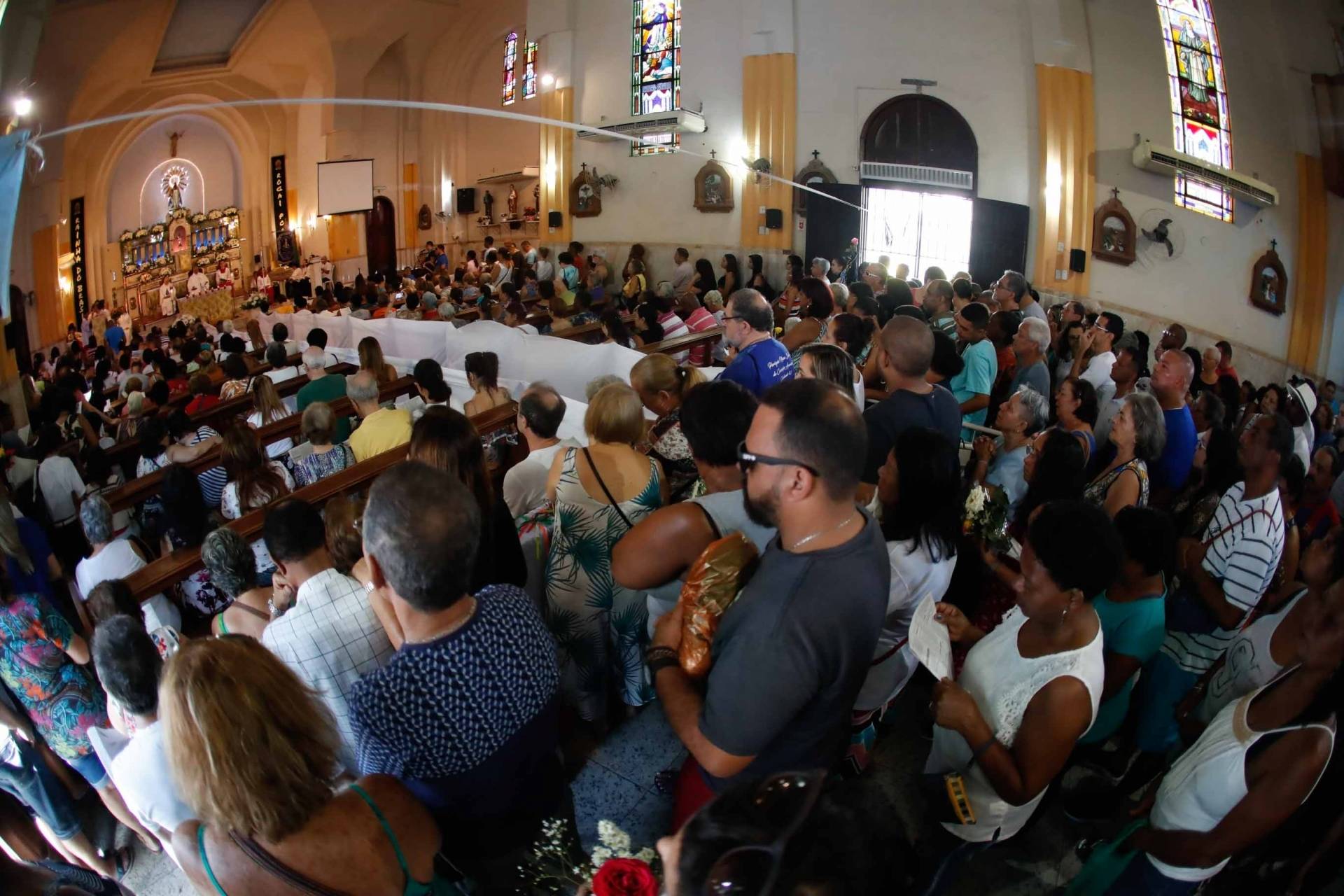 Fiéis lotaram a Paróquia Nossa Senhora da Conceição Aparecida, no Cachambi, ontem, dia da padroeira. “Só estou viva por Nossa Senhora da Conceição Aparecida”, conta Rosane dos Santos, de 60 anos, devota da santa há 20 anos.