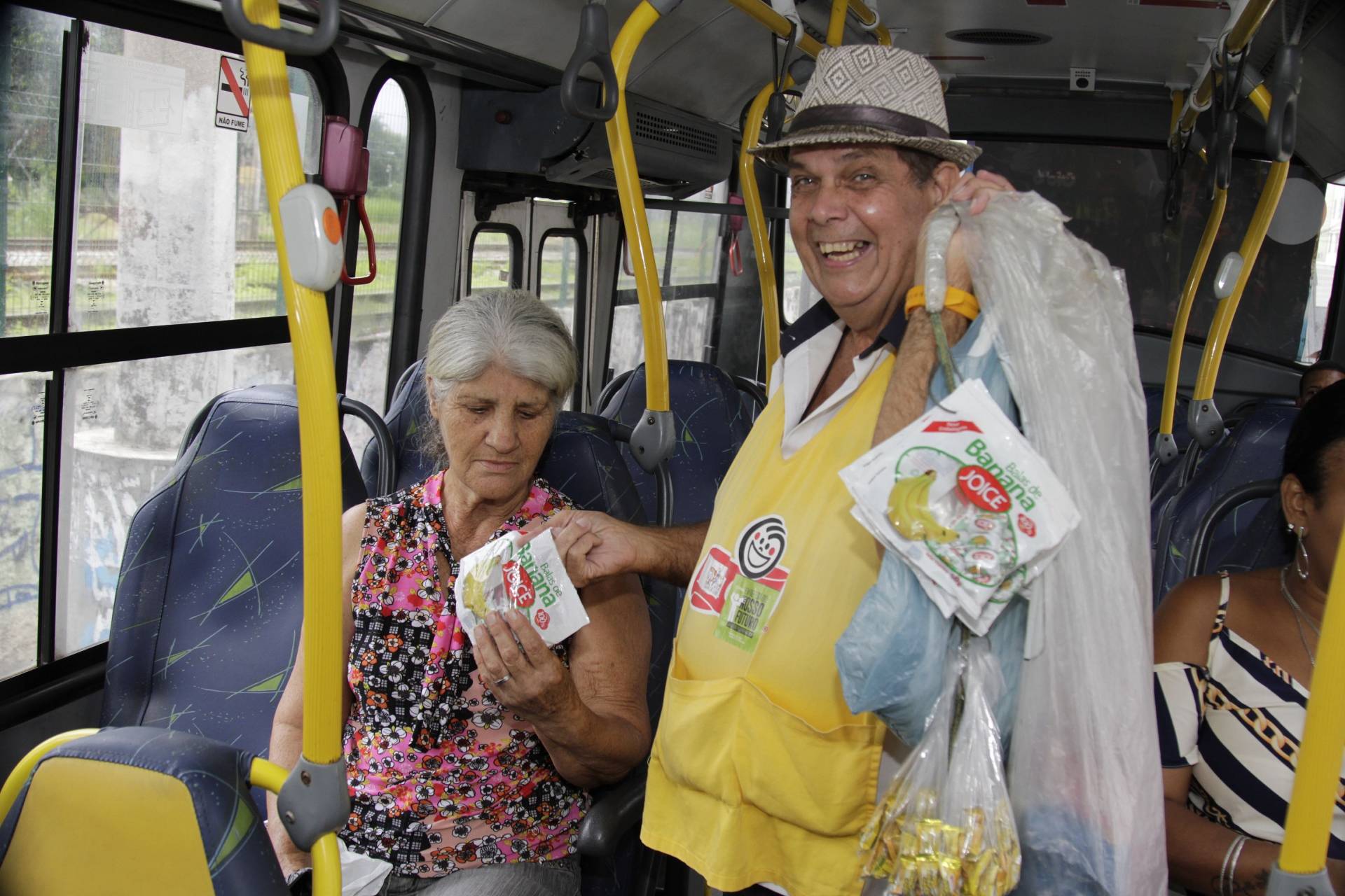"Eu não esperava ver isso no ônibus. Acho bonito as coisas que ele falou. Se todos procurassem fazer o mesmo, o mundo seria melhor. São palavras que fazem a gente refletir", disse a aposentada, que comprou balas de banana.