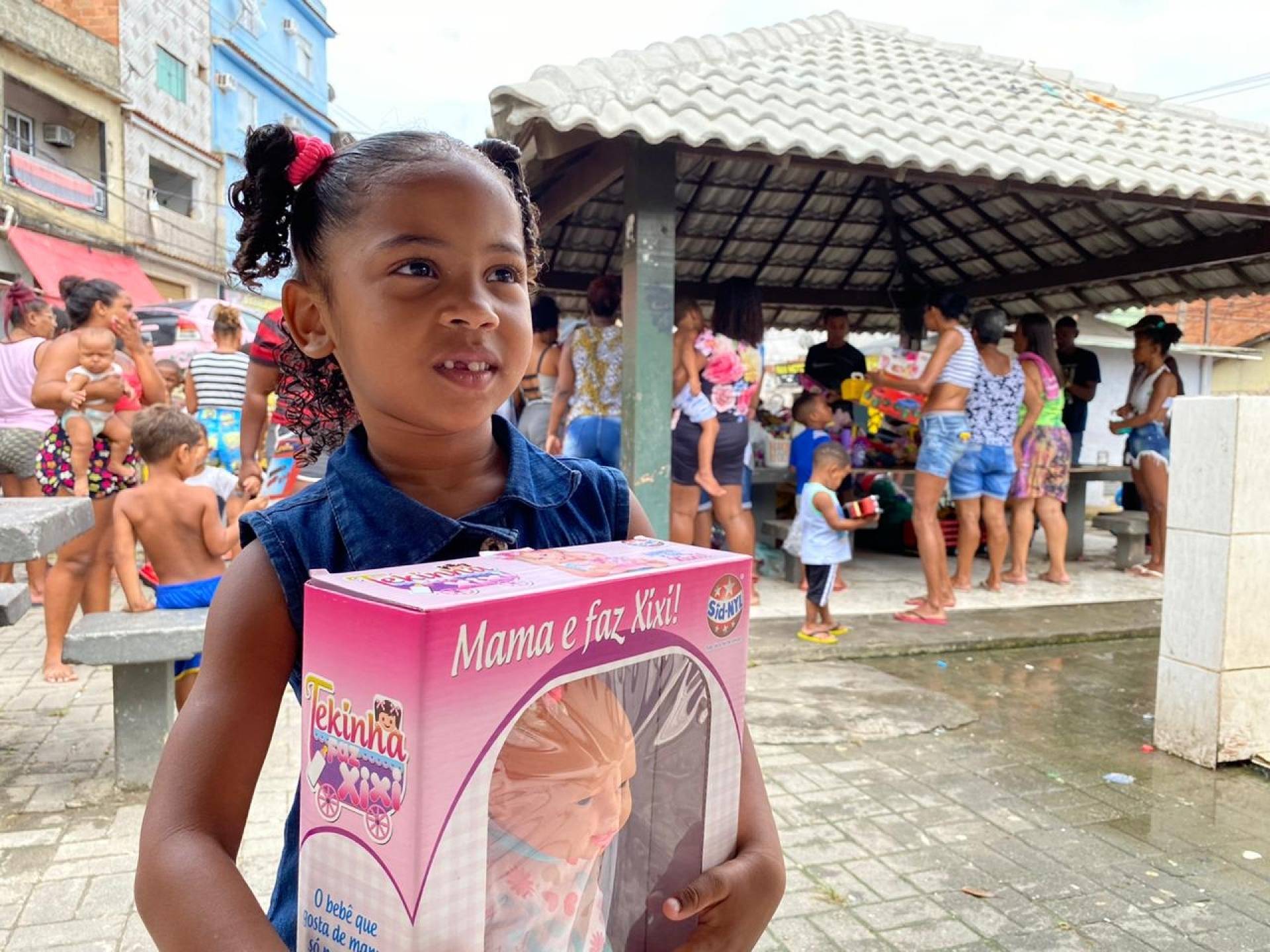 Tamires Beatriz, de 4 anos, levou para casa uma boneca. "Em casa vou brincar com ela", comemorou a pequena.