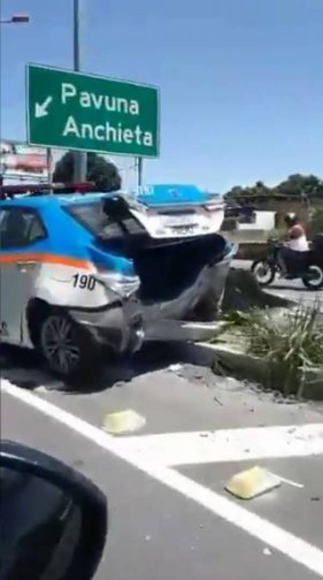 Acidente com uma Viatura da Pm no acesso da linha vermelha sentido Pavuna .