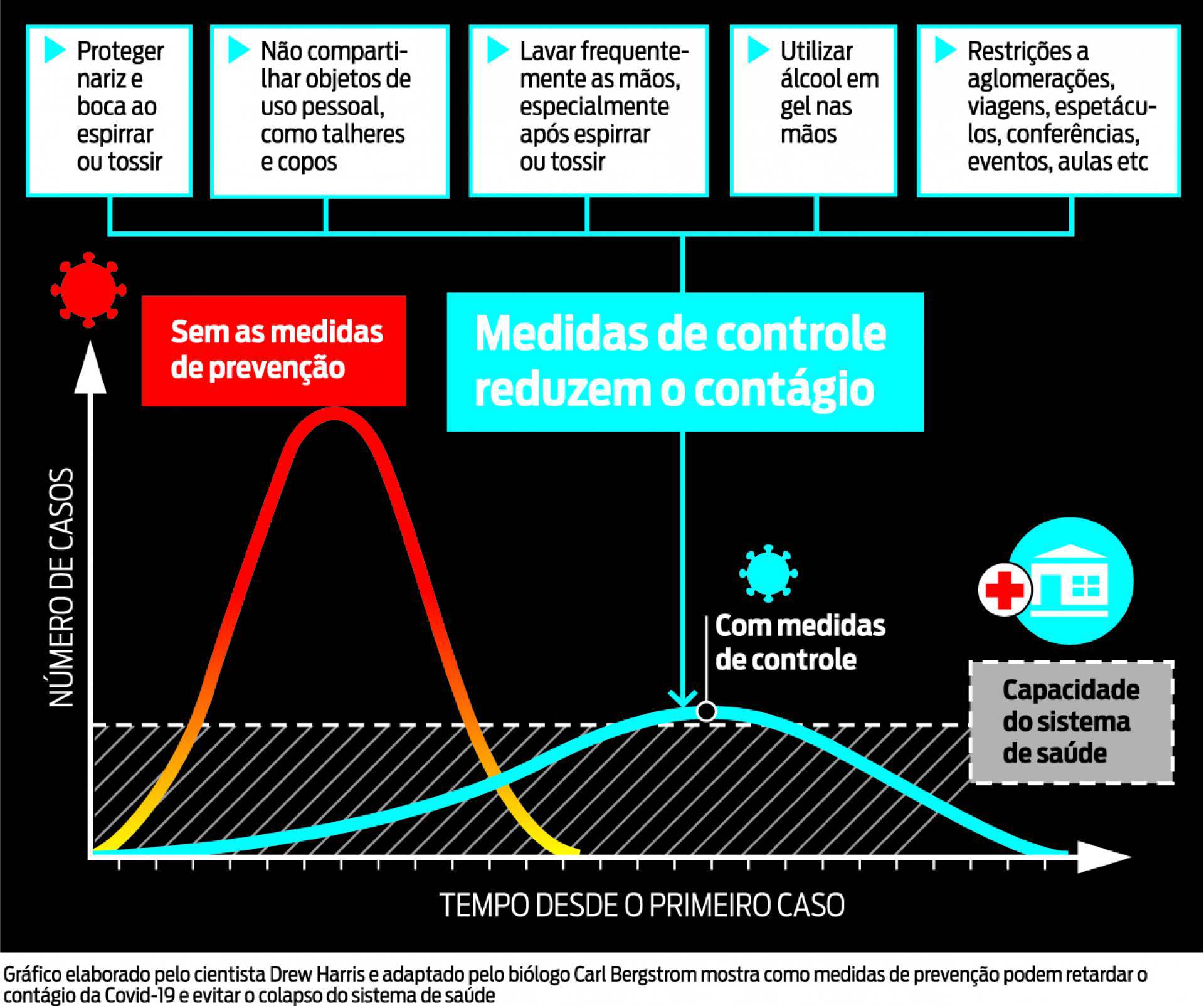 "O objetivo é desinclinar a curva. Porque com um pico alto e rápido (como se viu na Itália), a gente tem mais mortes, porque a pressão sobre o sistema de saúde é muito maior. E o sistema não está preparado para esta pandemia", explica. Ainda segundo ele, trabalhos mostram que se 75% da população aderir ao isolamento social, a curva de infectados cai drasticamente.