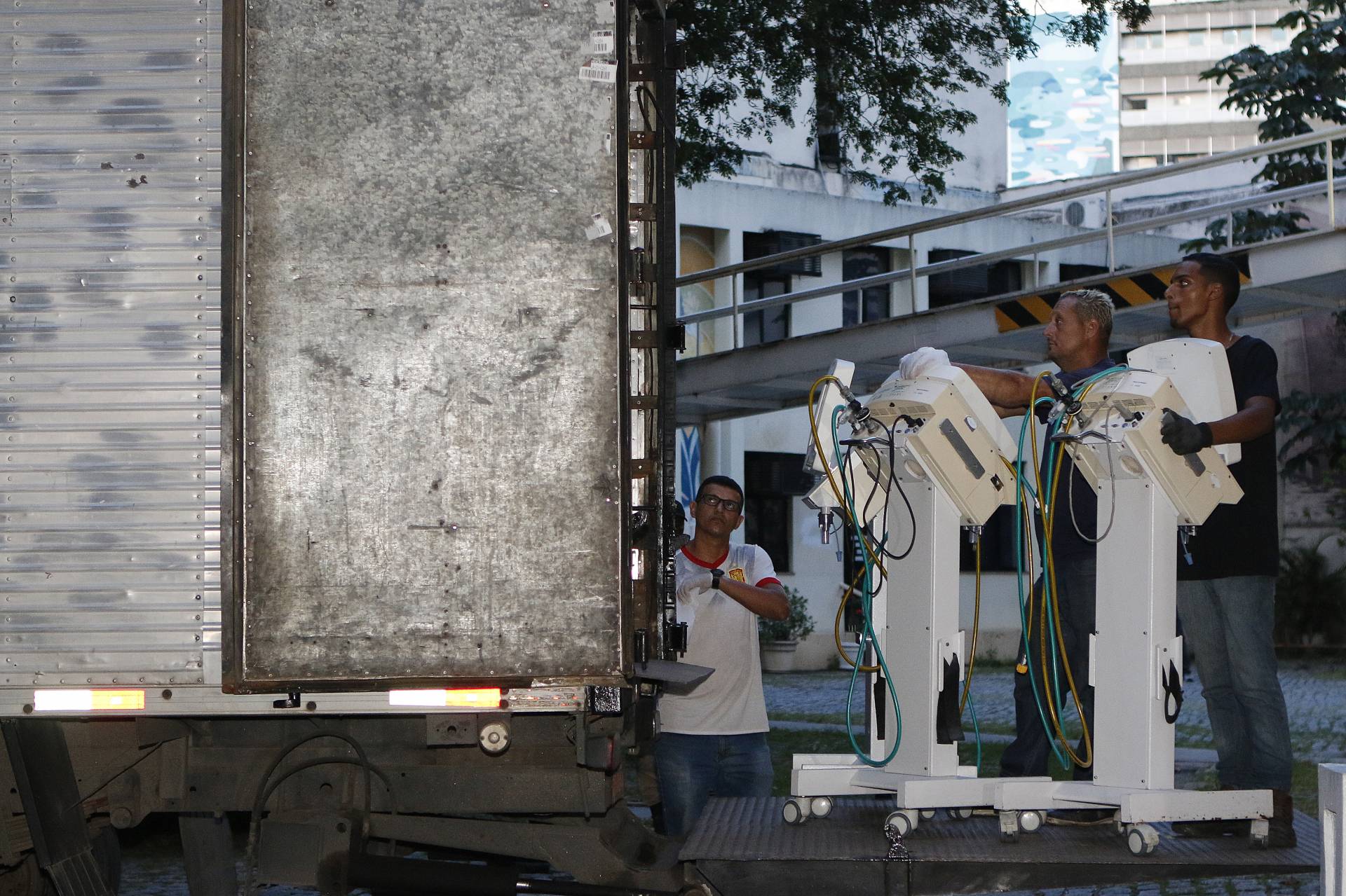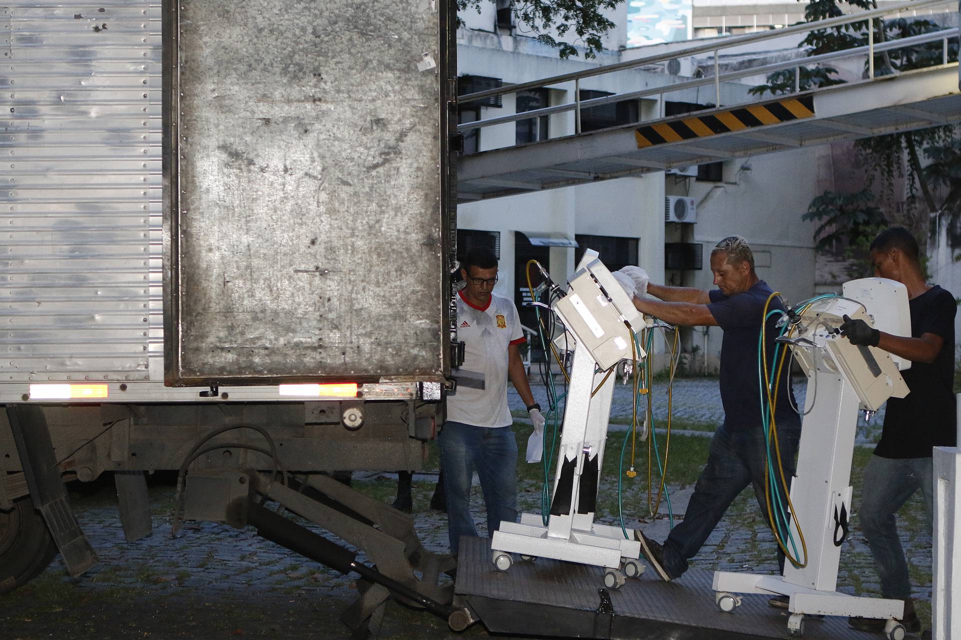 Foram retirados de caminhão os respiradores e monitores. Os colchões já foram levados para servir de apoio e proteção aos equipamentos dentro do caminhão. Há ainda cerca de 90 camas hospitalares, equipamentos de centro cirúrgico, bombas infusoras e outros mobiliários que deverão sair nos próximos dias.