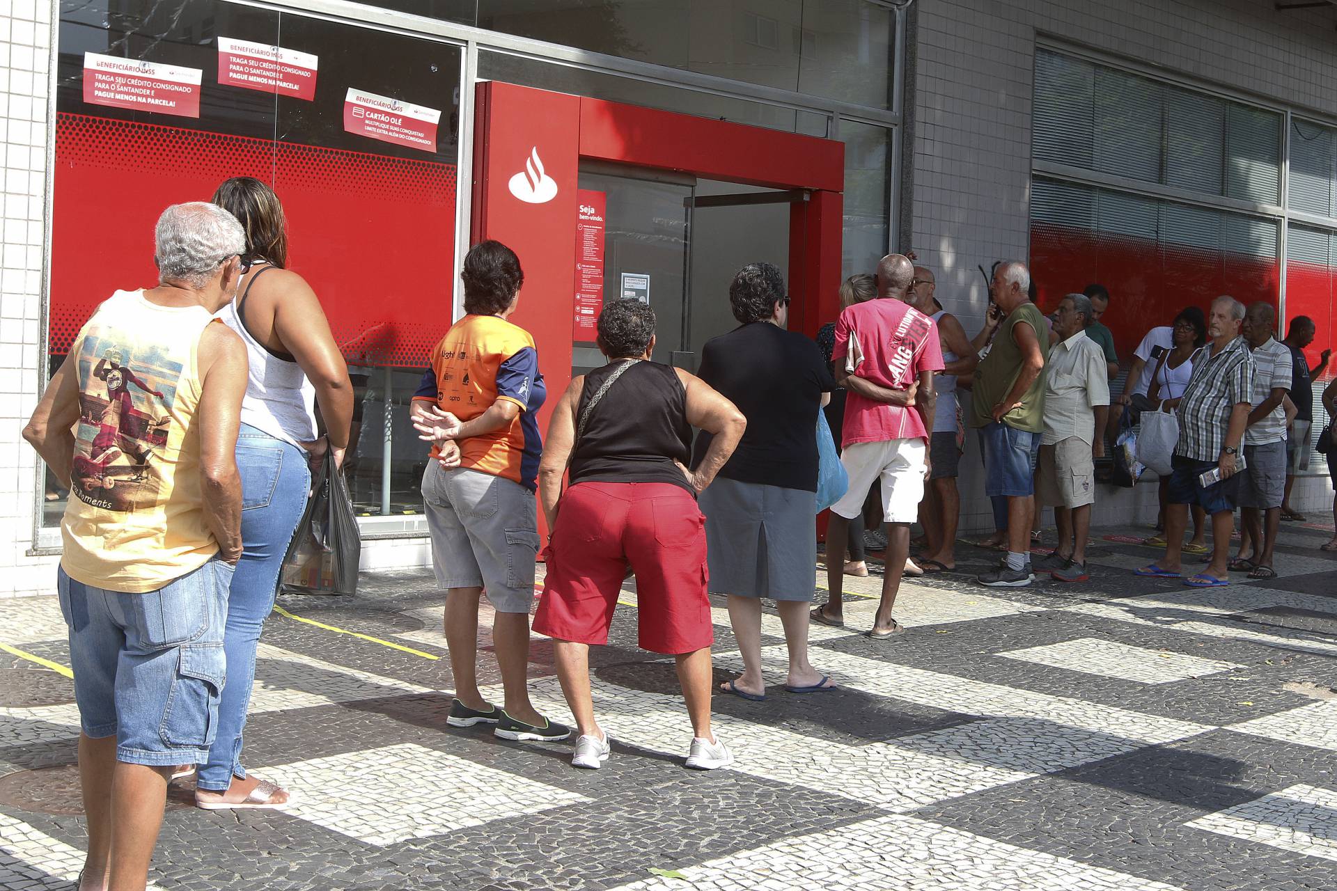 Grande aglomeração em filas de bancos na manhã desta terça hoje, na foto, filas em agências bancárias na Avenida Nicarágua, na Penha, Zona Norte do Rio