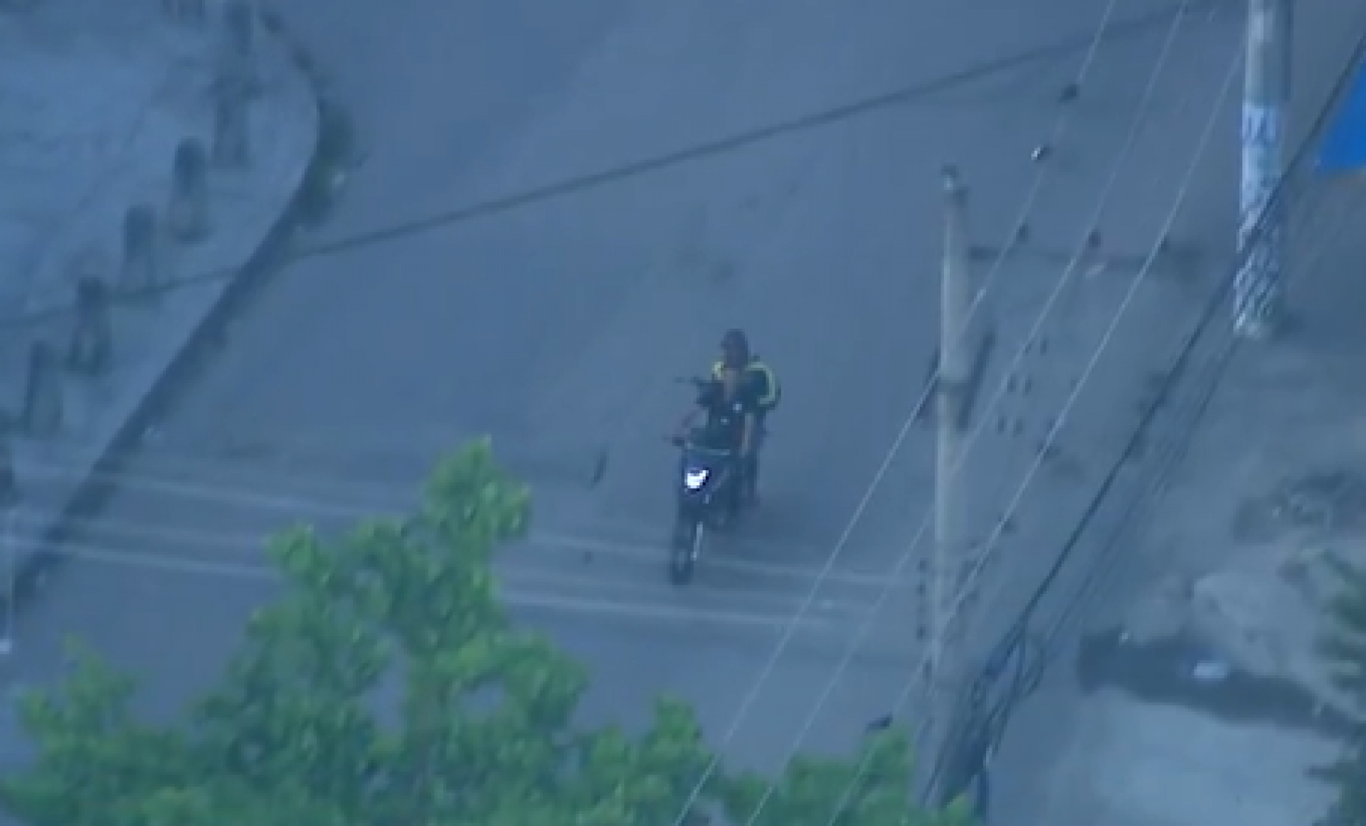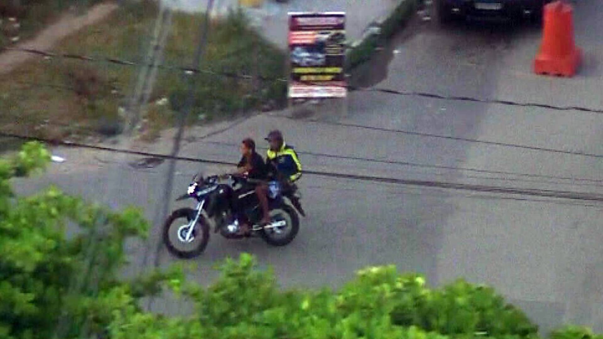 Além do baile funk na Cidade de Deus, foram mostradas imagens que flagraram dois bandidos com fuzis circulando em uma moto pelo Complexo do Chapadão, Zona Norte do Rio. Os registros aéreos também são do Bom Dia Rio, da TV Globo.