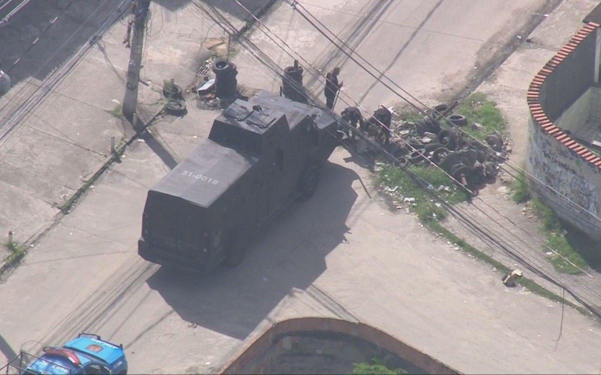 Em uma das principais vias da região, que faz a ligação entre Anchieta e Costa Barros, há pelo menos dois pontos de bloqueios. Os criminosos usam pneus para tentar impedir a ação da polícia.
