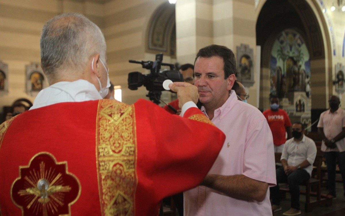 Paes se emocionou muito durante a missa e esclareceu o motivo. "Tem um monte de coisa. Primeiro, porque tinha quatro anos que eu não podia comemorar essa data de São Sebastião como prefeito, que é uma coisa que me honra muito, no dia do santo protetor e padroeiro da nossa cidade", disse o prefeito, que leu a liturgia da palavra na celebração.