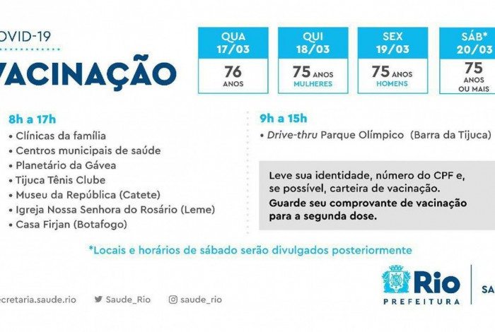 O horário para a vacinação no sábado ainda não foi divulgado.