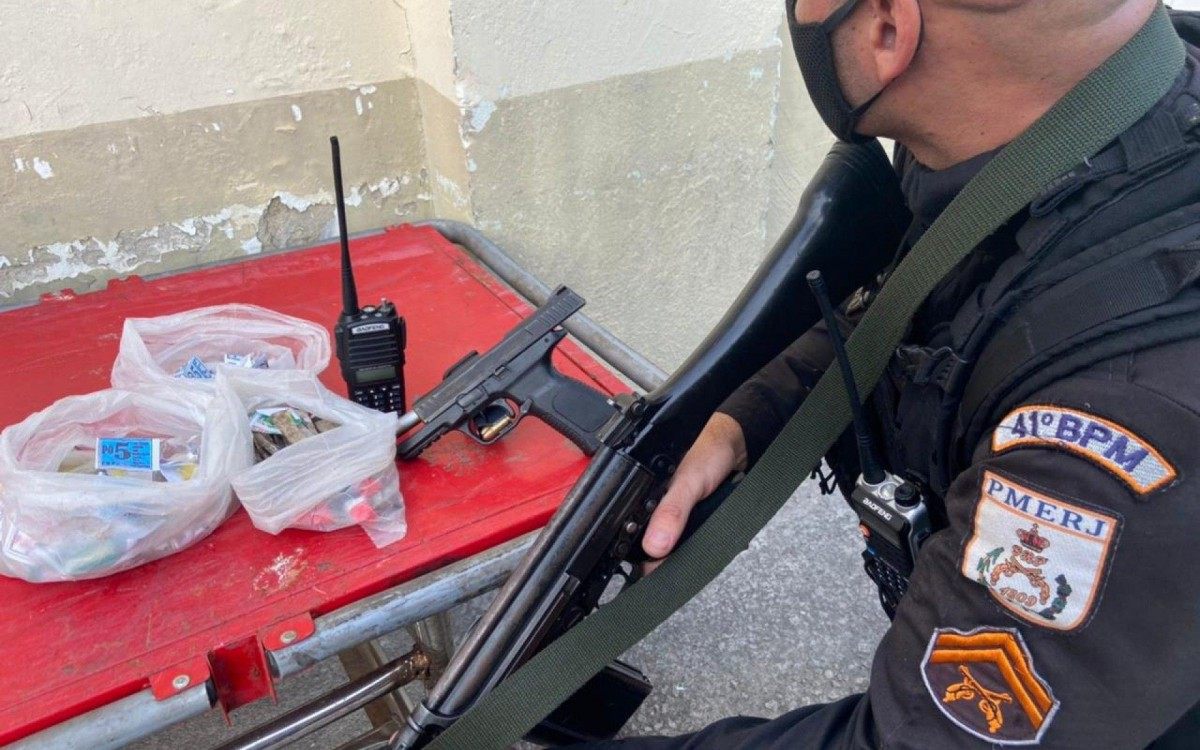 Com ele, uma pistola, drogas e um rádio transmissor foram apreendidos. A ocorrência encaminhada à 39ª DP (Pavuna).