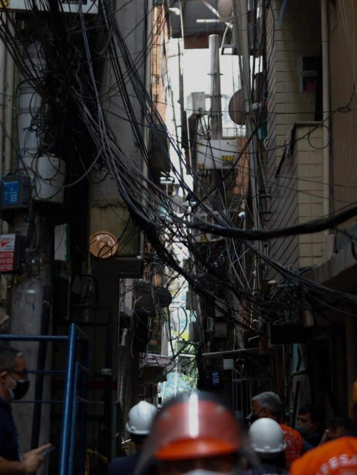 "As equipes da conservação estão aqui desde cedo fazendo o escoramento do prédio. Como os dois últimos andares vão ser derrubados, nós precisamos escorar para que não cause maiores problemas. A área foi isolada porque vai ser feito um trabalho de demolição, apesar de ser manual, para não colocar ninguém em risco.