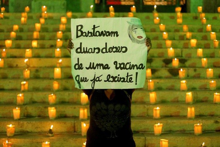 No manifesto, que também aconteceu em outras cidades do país, 500 velas foram acesas na escadaria da Câmara Municipal, representando todas as vítimas da doença