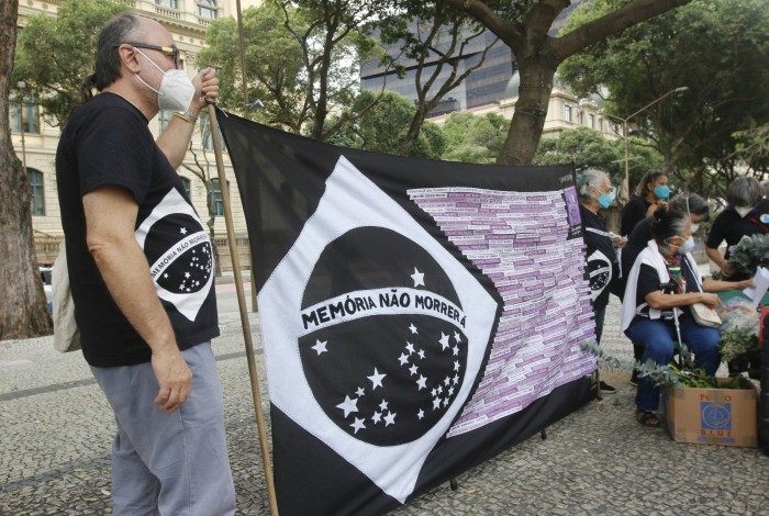 “Esses painéis expostos hoje aqui na Cinelândia são painéis com nomes de pessoas que morreram durante a pandemia. As ‘Linhas do Rio’ receberam os nomes pelos familiares para serem bordados nesses painéis. Tem cerca de 3 mil nomes bordados, representando as 514 mil vidas perdidas pela covid-19 pelo desgoverno que a gente vive, que não dá vacina ao povo brasileiro”, disse Reimont, de 59 anos, um dos organizadores do ato.