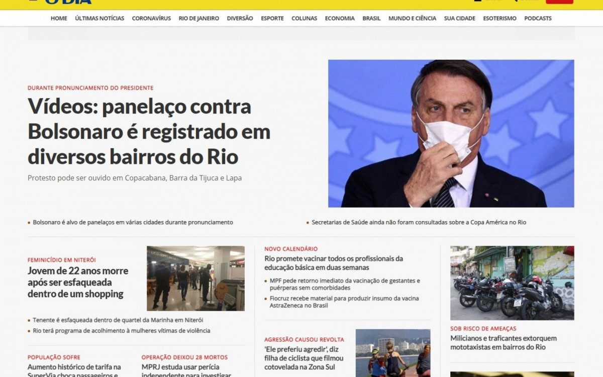 Desde o final da década de 1990, com o objetivo de aprimorar cada vez mais a relação com o leitor, o portal online do DIA vem construindo novas formas de se fazer jornalismo. Com mais de 30 milhões de usuários únicos por mês, O DIA Online se destaca por valorizar temas importantes para a vida do cidadão carioca, sempre com informações atualizadas em tempo real. Cidade, Esportes, Diversão, Economia, Brasil, Mundo e Ciência são algumas das principais editorias do site, que conta, também, com uma seção própria para reportagens sobre a pandemia de covid-19.
